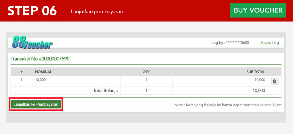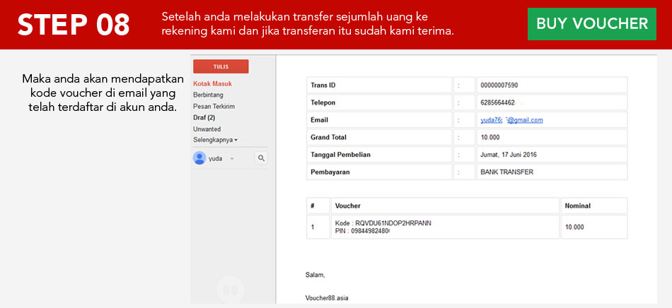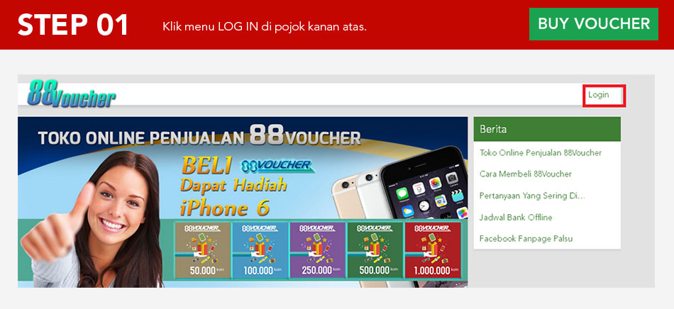 Masukkan Email dan Password. Pastikan email anda aktif, karena Seluruh transaksi di 88voucher menggunakan Email.